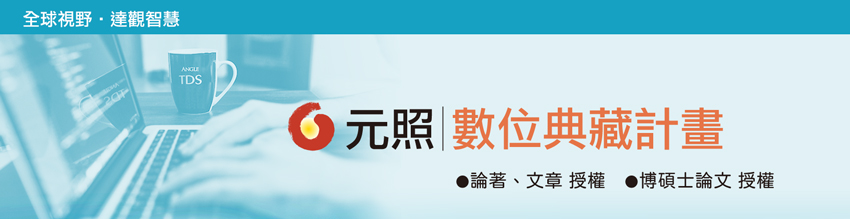 元照為紙本型態的知識,加入數據分析的技術、數位脈絡的行銷,更致力於傳播、翻轉與推廣,與國際資料庫 Google Scholar、EBSCO、ProQuest、DOAJ 進行合作,有效增加曝光與引用,誠摯邀請您共同加入〈學位論文數位推廣計畫〉,